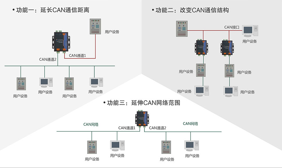 CAN中继功可实现CAN网络传输速率和传输距离的矛盾,同时扩大通信网络数量。