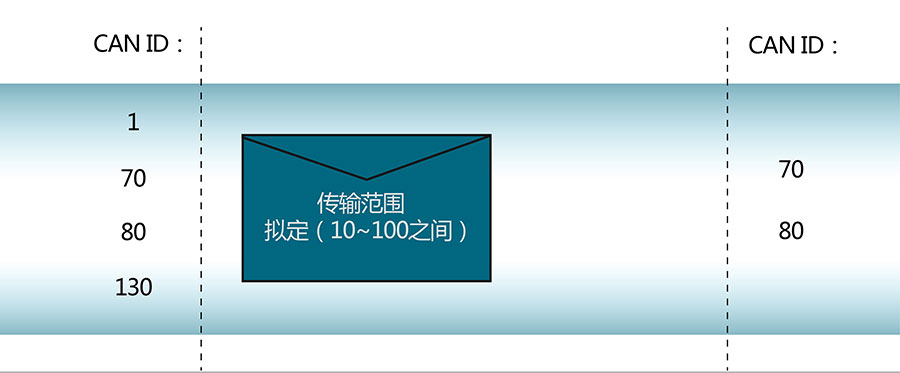 CANET200仅接收设置范围内的CAN ID的数据,过滤掉不符合接收范围的CAN帧。