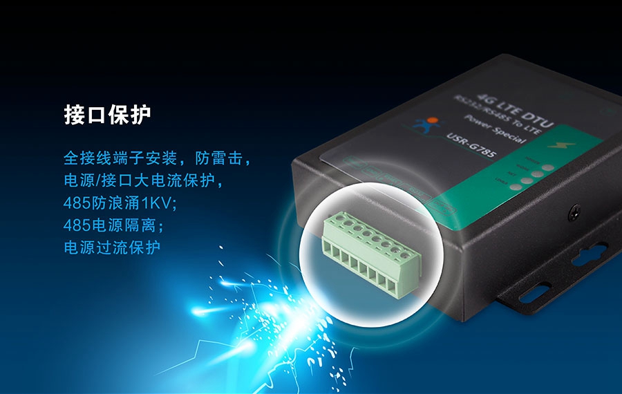 USR-G785 是一款高稳定、抗干扰的工业级无线数据传输终端,专为电力行业设计,为苛刻环境下无人值守的电力项目,提供稳定的网络通信。既可以实现常规 DTU 的数据透传功能,也可以实现电力专属协议透传功能。通过简单的 AT指令进行设置,即可轻松使用本产品实现串口到网络服务器的双向数据传输。
