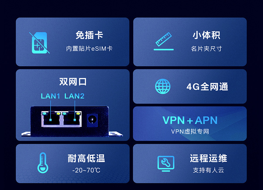 ● 内置贴片eSIM卡,避免接触不良