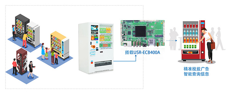 对洗车机稍加改进,增加广告屏,内嵌工控机控制主板USR-ECB400A,既能支持本地数据发送,又能联网在线传输;同时,预留多个接口方便更多场景应用。