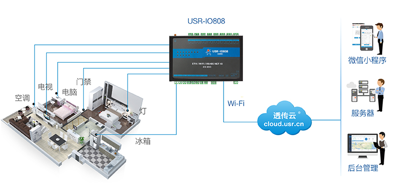 此处采用网络IO控制器对酒店设施的开关进行远程智能控制,加速酒店信息化建设,提高智能管理水平,帮助酒店运营商节省更多成本。