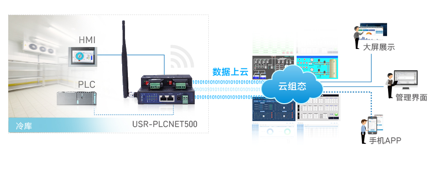 采用PLC云网关+透传云的软硬件组合方式,助力传统PLC秒变远程PLC,对传统PLC设备进行远程维护与更新,节约时间,节省成本,为厂商提供更多便利。