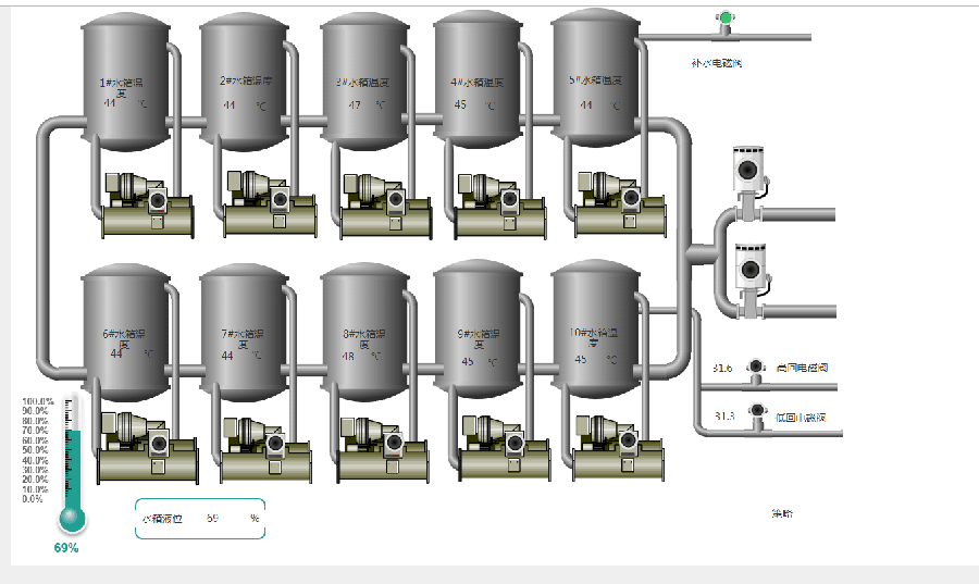 利用云组态,快速获知水箱温度变化详情,数据出现异常自动报警,便于工作人员及时调整维护。