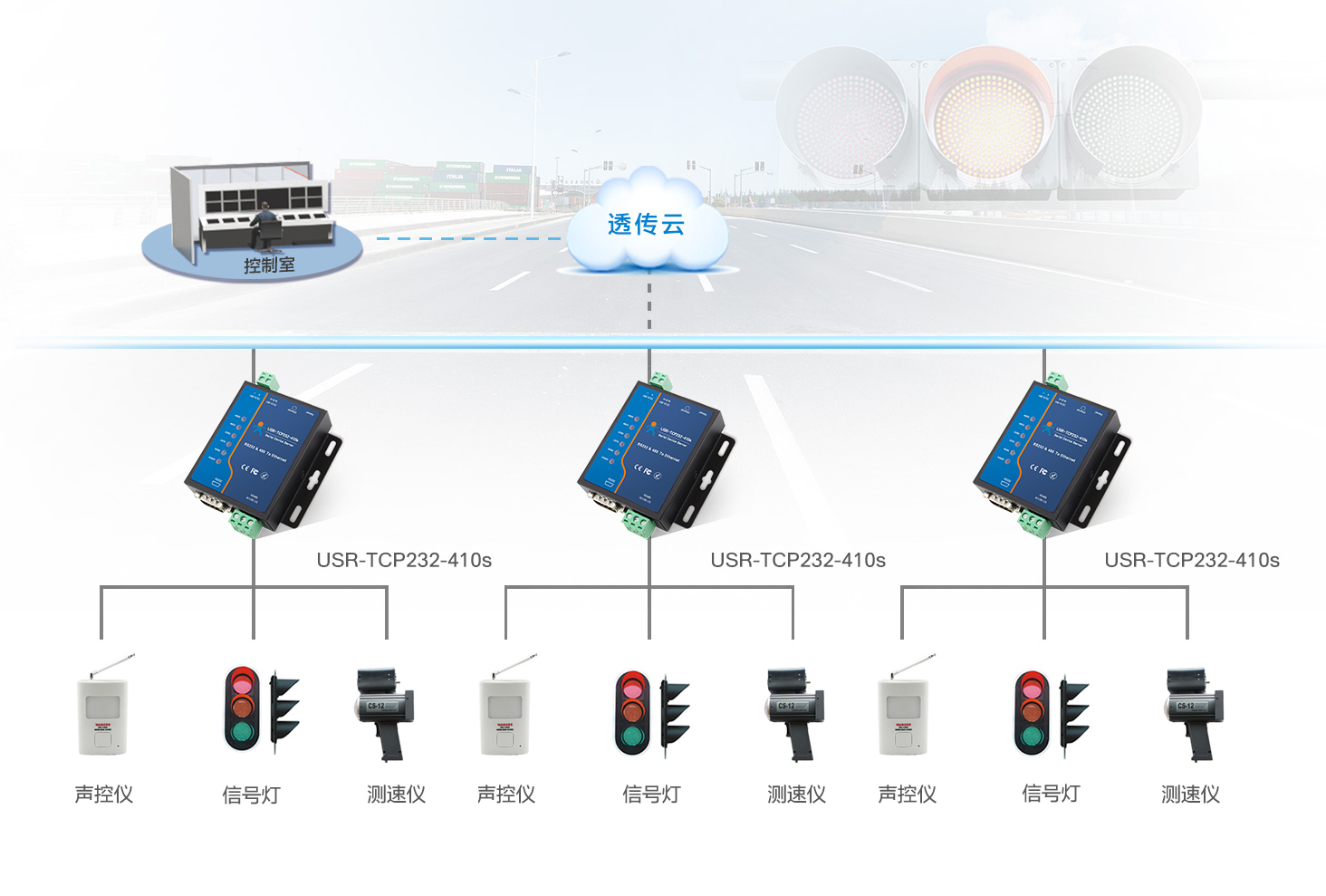 3、网络数据经由透传云上报服务器,方便控制室监管人员随时查看交通路况,并根据需要远程控制信号灯明灭切换