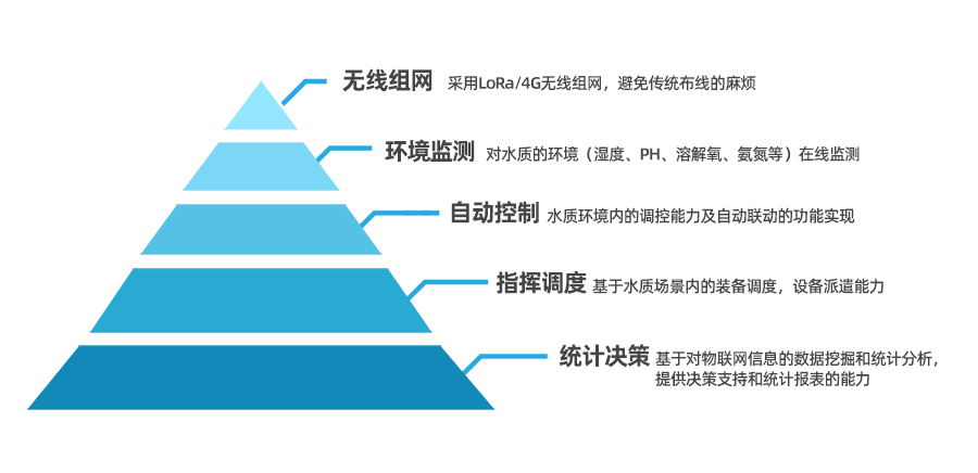 (1)24小时水质自动在线监测:监测水温、溶解氧和酸碱度,并将参数实时传输至监测中心和技术人员的手机。