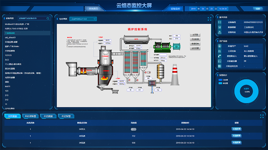 一站式完成终端设备数据采集、实时控制、报警推送、分组管理、组态设计等功能。